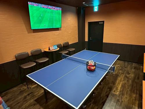 卓球スペースは何名様でご利用いただいても同一料金!大型モニターがあるのでスポーツ観戦も可能です!